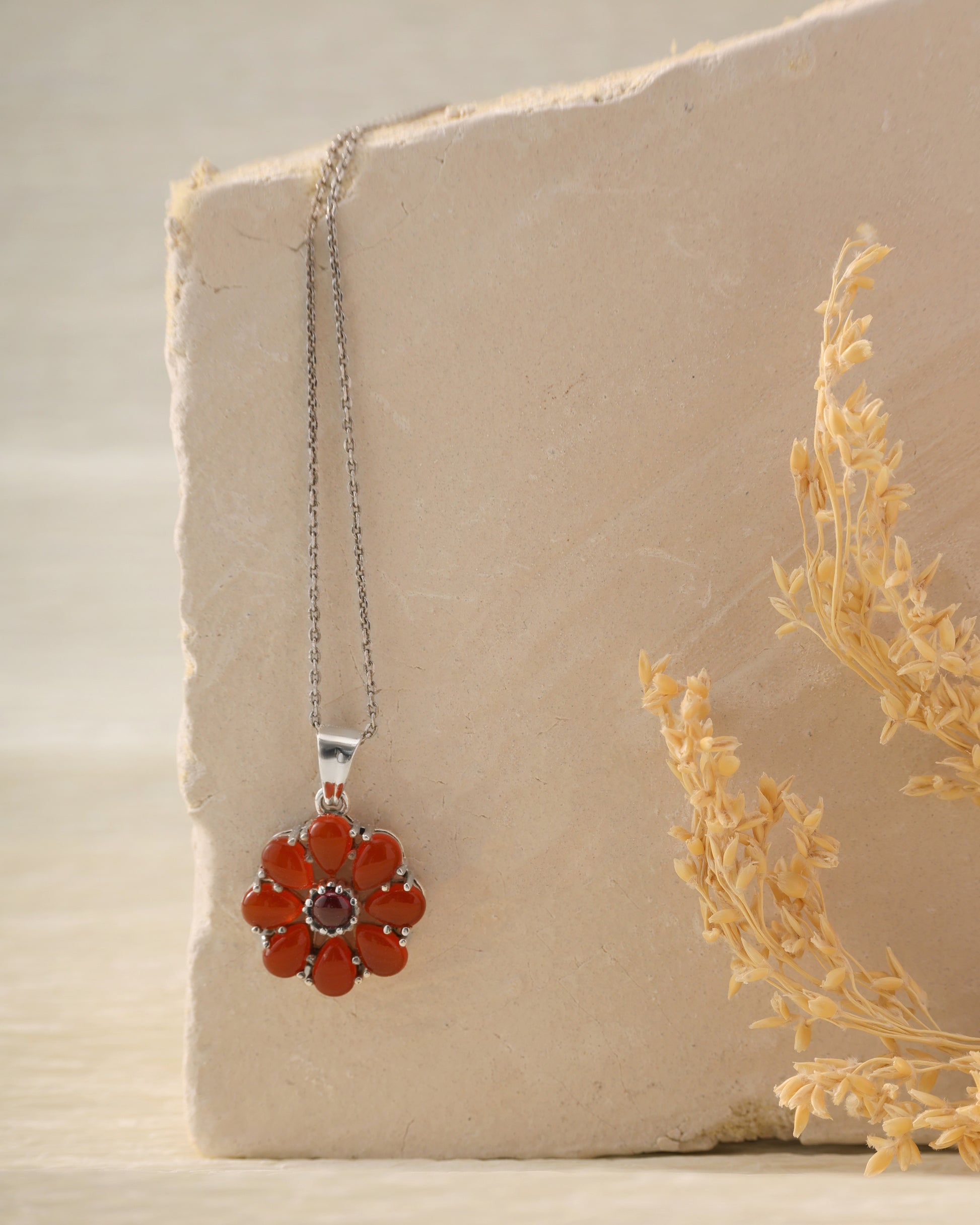 Ignite your inner strength with the bold beauty of our Carnelian Flame Pendant, handcrafted in 92.5 sterling silver. The rich, fiery hues of natural Carnelian gemstone are shaped into a flame-inspired design, symbolizing passion, vitality, and courage.