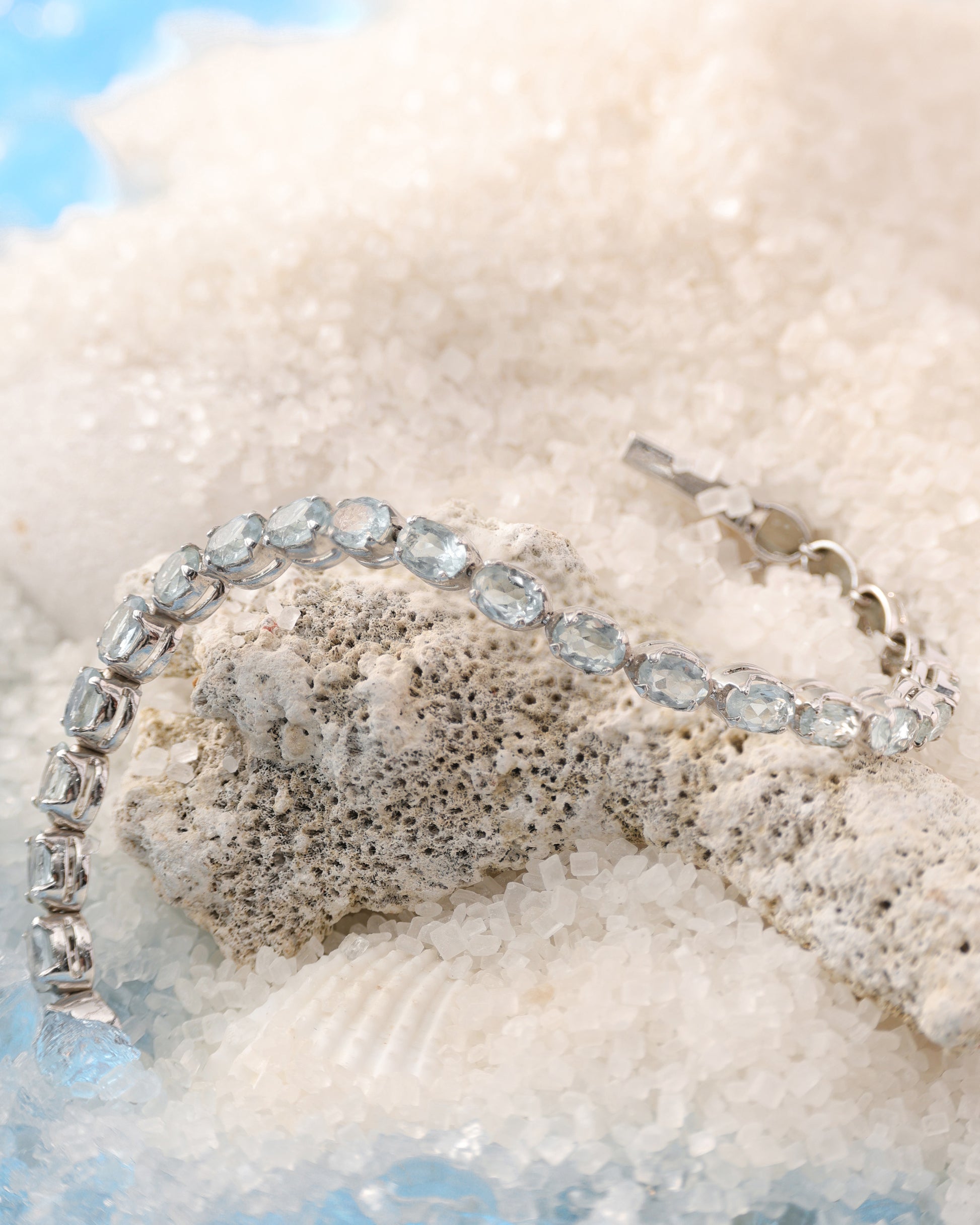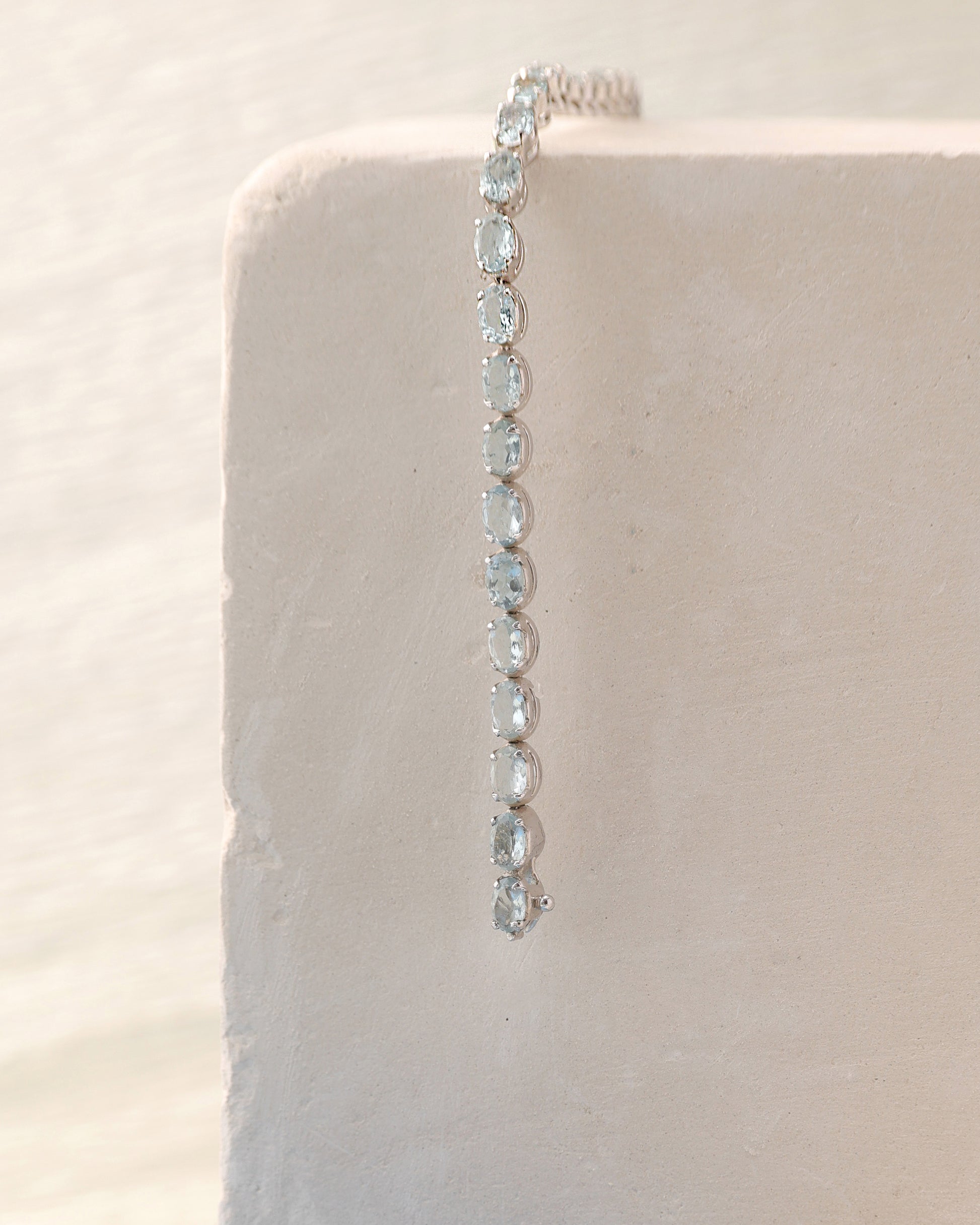 Delicate yet striking, this bracelet showcases the serene brilliance of blue topaz, a gemstone cherished for its clarity and calming energy. Handcrafted in 925 sterling silver, it offers a refined elegance that transitions effortlessly from everyday wear to special occasions.